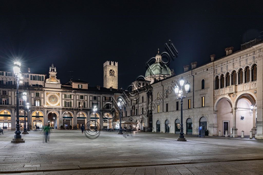 Brescia, piazza Paolo VI: da sinistra, il Broletto, con la t...