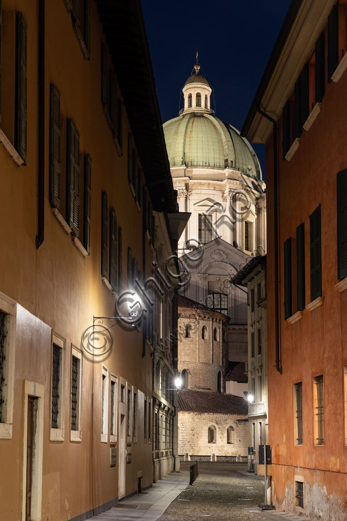 Brescia: veduta serale delle cattedrali. Sullo sfondo, il Du...
