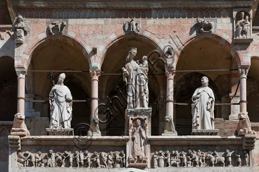 Cremona, Duomo (Cathedral), facade, loggia over the Portal:...