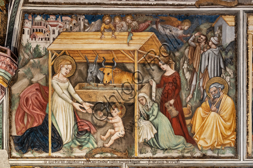 Foligno, Trinci Palace, the chapel: frescoes by Ottaviano Nelli, realised in 1424. Detail of one wall: Nativity.